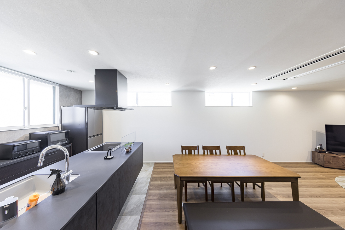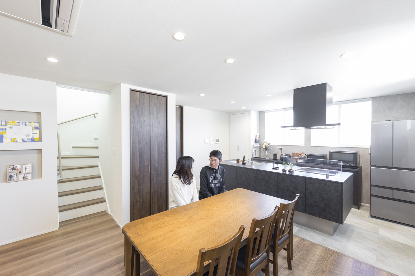 キッチンをカッコよくスタイリッシュにしてもらいたかったです。アイランドキッチンを希望して色や高さも自分たちに合わせてもらいました。あとはリビングを広くしてもらいたくて20畳以上の広さになるように設計してもらいました。