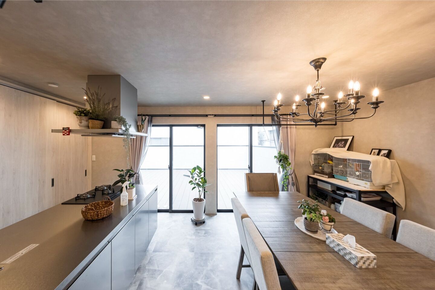 リビングに繋がる広いテラスがある家