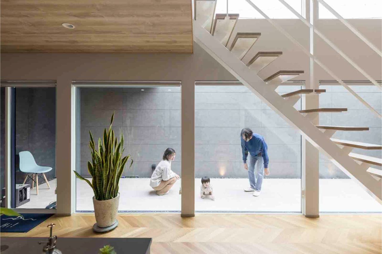 リビングから見える中庭のテラスは日向ぼっこできたり、誰の目を気にすることもなく気兼ねなく過ごせるとこは楽しい過ごし方です。