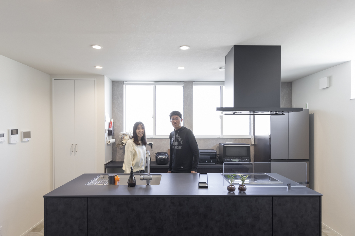 仕事から帰って来てキッチンの上にあるスピーカーライトから音楽を流しながら料理をして、2人でお酒をな楽しみなが過ごす時間が2人にとって幸せな時間です。