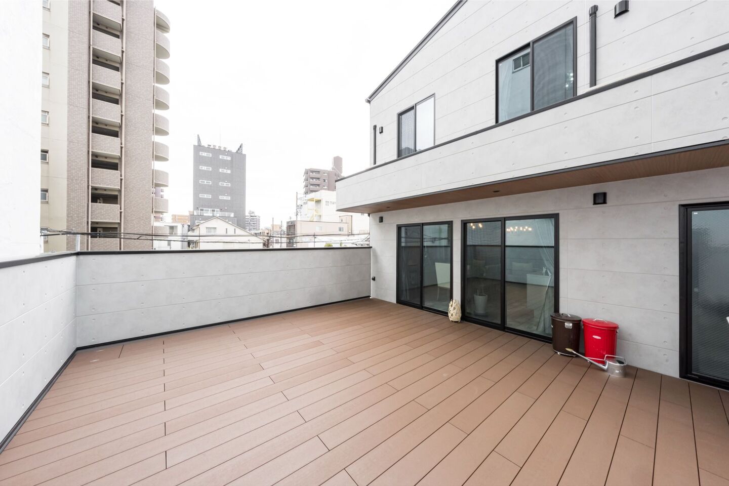 リビングに繋がる広いテラスでBBQやアウトドアリビングの家具で寛いで過ごしたり、自分のスペースで仕事も分けて出来るようにしています。